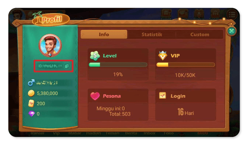 Untuk menemukan User ID, ketuk Avatar Anda di sudut kiri atas layar utama. User ID tercantum dibawah avatar Anda. Masukan User ID Anda disini. Contoh: "1234567".